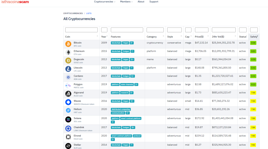 이 사이트는 해당 코인이 스캠인지 평가하는 사이트로써