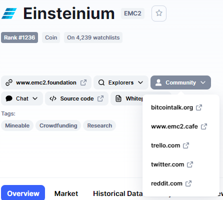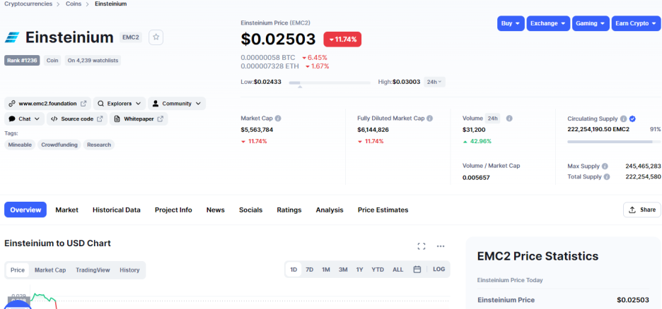 이어서 코인마캣캡에서 아인슈타이늄에서