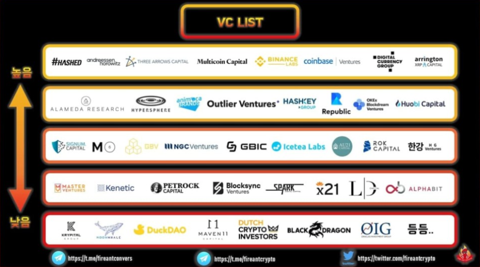 거래소의 VC인 Hashed, Kenetic, Alameda research, Coinbase, Huobi 등이