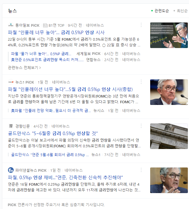 몇주전 fomc 회의에서 이번에 금리인상을 0.25% 올렸습니다
