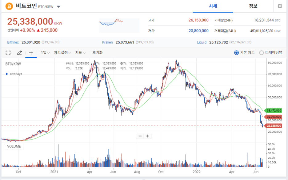 그러나 비트코인 1억을 간다느니 회복한다느니