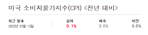 얼마전 뉴스를 통해 CPI지수가 9.1%