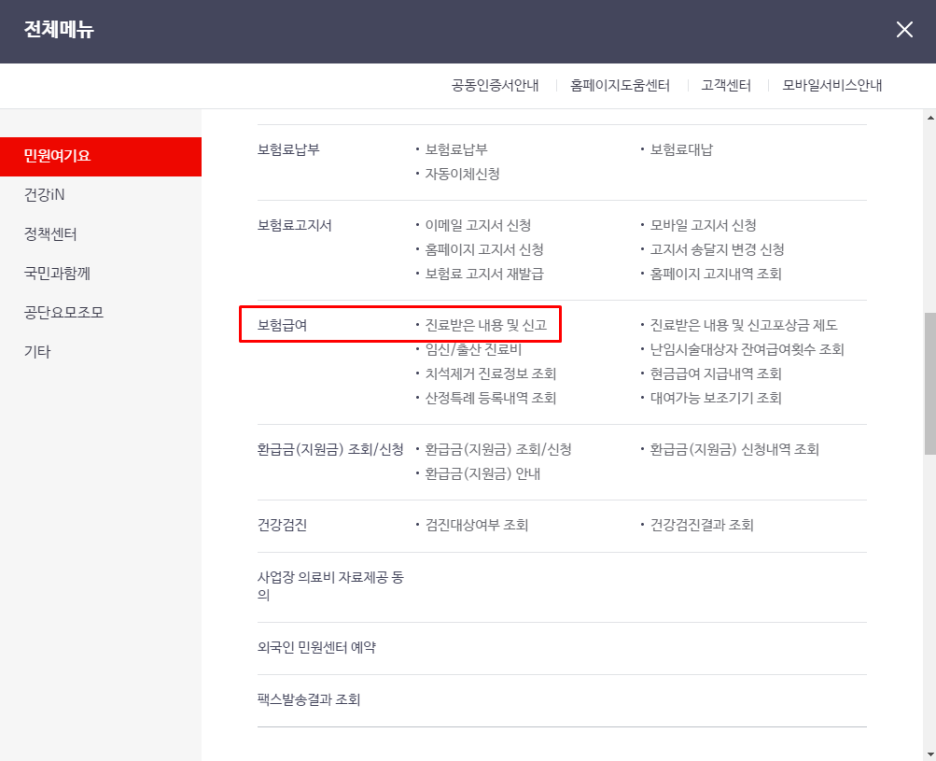 국민 건강보험 검색 - 진료받는 내용 보기- 공인인증서 로그인 후 확인!