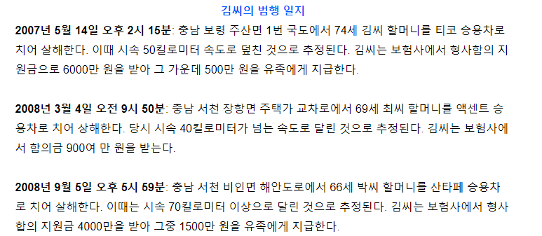 1년반동안 할머니만 세차례 고의 사고를 낸 후