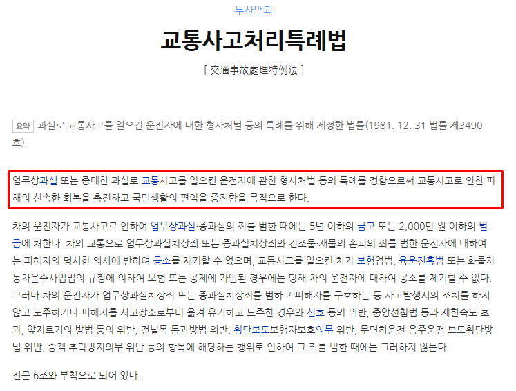 운전자보험 담보는 교통사고처리 특례법(이하 교특법)과