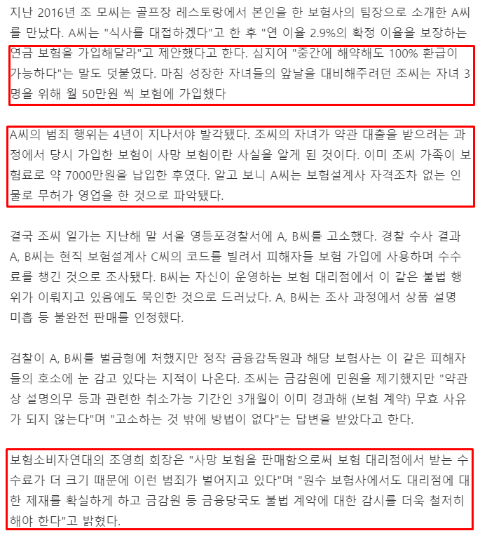 출처- 매일경제 저축성 연금보험이라고 판매한 종신보험