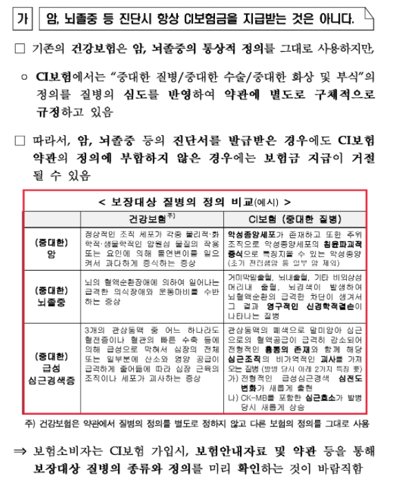 결국 이 내용이 CI보험의 현재 문제점을 만드는 원인이 된것이죠!!
