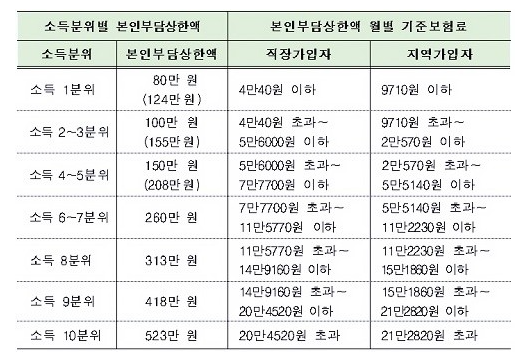 사람마다 나뉜 소득별로 의료비 지출의 상한선을 설정해서