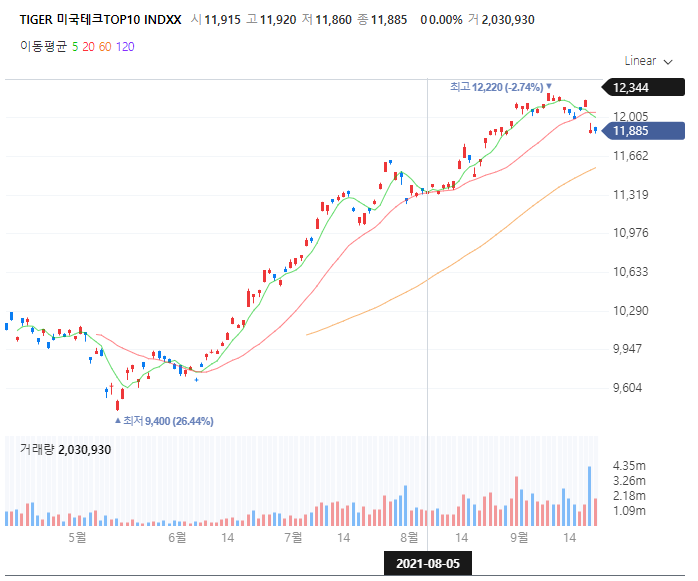 TIGER 미국테크TOP10 INDXX 이것도 괜찮겠다 싶어서 들어갔습니다