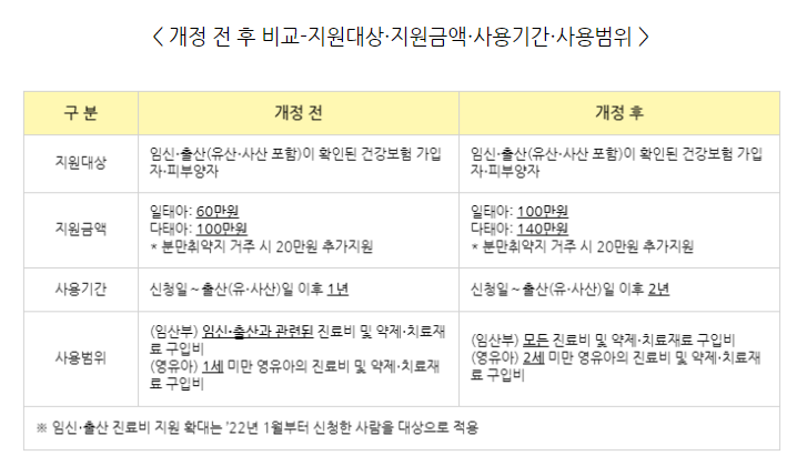 임신․출산 진료비는 기존 1세 미만까지 사용이 가능했으나,