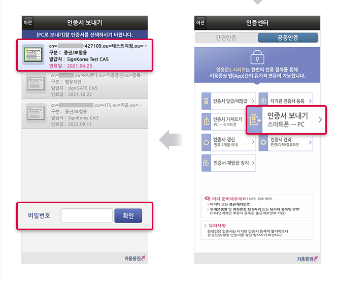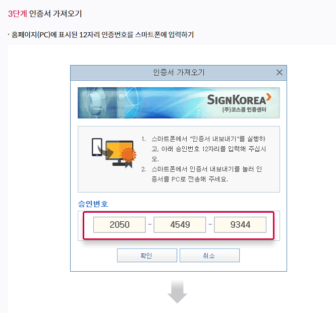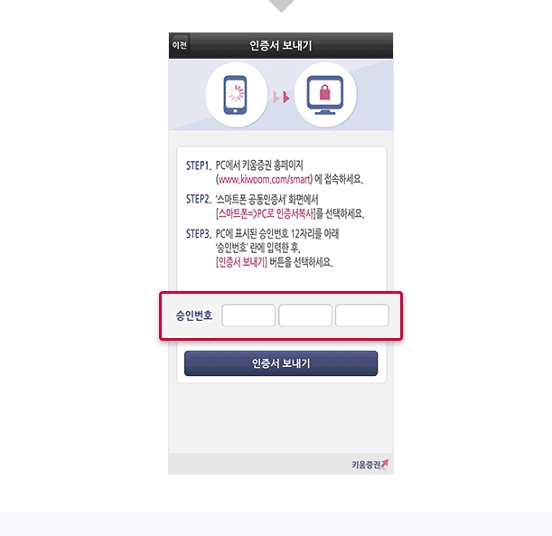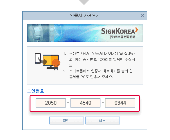 인증서 보내는 기기에선 숫자가 뜰것이고