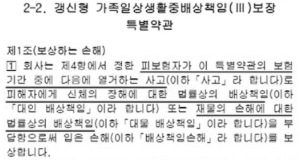 타인의 신체와 재물을 배상해주는 기특한 특약입니다